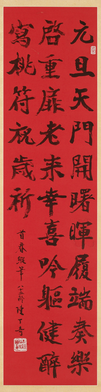 楷書 (紅紙) 首春縱筆